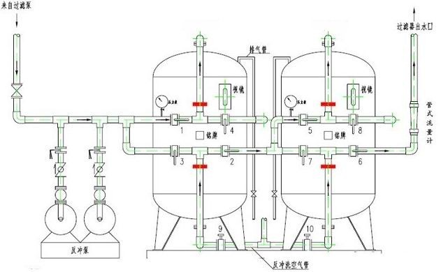 9、過(guò)濾器的濾料應(yīng)每年進(jìn)行翻砂整理,并觀察濾料的層度,如發(fā)現(xiàn)濾層減薄,及時(shí)補(bǔ)充濾層。